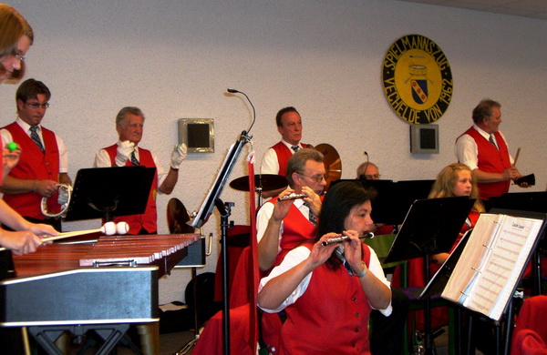 Diesmal hatten sich die Vechelder Musiker zur Begrüßung der Konzertbesucher etwas Neues überlegt: Mit dem musikalischen Willkommensgruß „Scotland the Brave“ marschierten die Flötisten unter dem Beifall der Gäste von zwei Seiten „im Gänsemarsch“ vor die Bühne, auf der die Schlagzeuger schon Platz genommen hatten.