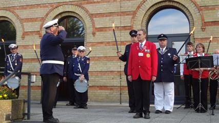 Einen würdevollen Abschluss fanden das Kreismusikfest, die Jubiläumsfeier des Spielmannszuges und die Schlossparktage mit dem um 18:30 Uhr vor dem Bürgerzentrum beginnenden großen Zapfenstreich, dargeboten vom Musikzug der Freiwilligen Feuerwehr Meine, dem Spielmannszug Rot-Weiß Schöningen sowie der Ehrenformation und den Fackelträgern des Spielmannszuges der Freiwilligen Feuerwehr Dettum, der das Kreismusikfest im nächsten Jahr ausrichten wird.