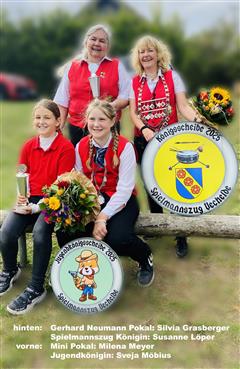 Die diesjährigen Gewinner der Königsscheiben und Pokale des Spielmannzuges. Ausgeschossen und geehrt beim Volksfest in Vechelade.